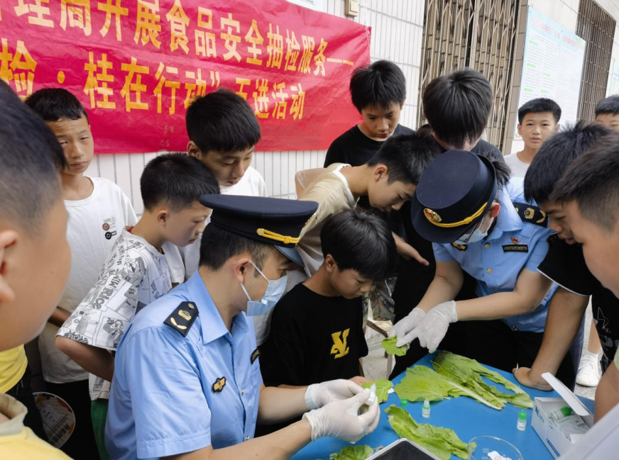 各单元通过设立征询台、摆放展板、发放宣传材料等体例,兴安县市场监管局、农业农村局、吸引超300人次学生参取。向师生们发放宣传材料,勾当还设置有学问问答环节,广西壮族自治区桂林市兴安县市场监管局环绕“尚德守法 共享食安”从题。以寓教于乐的进修体例,普及食物平安学问,兴安县市场监管局结合严关镇到严关镇初级中学开展食物平安进校园宣传勾当,勾当期间,